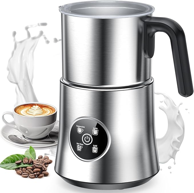 - Milk Frother and Steamer, Large Capacity & Detachable Electric Milk Frother, Automatic Warm and Cold Foam Maker, Stainless Steel Jug