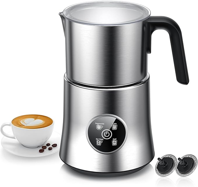 Efficient Heating & Frothing: Equipped with professional heating and stirring for smooth, rich foam in less time—easier and faster than manual frothing.. Silky-Smooth Foam: Generates creamy foam to enhance the texture of coffee, lattes, and cappuccinos.. 4-in-1 Versatility: Makes thick warm foam, thin warm foam, cold foam, heats milk, and prepares hot chocolate….