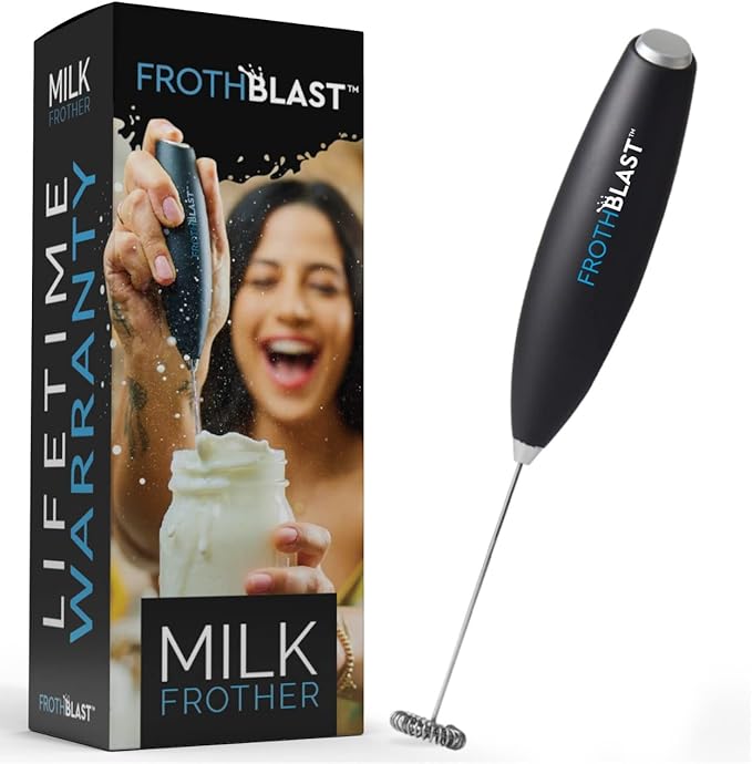 Bye-bye Flat froth! ….And Hello Atomic Froth Explosion! FrothBlast gives you that Fabulous Froth experience you crave while you’re still loungin’ about in your jammies! No need to head out to Dunkin or Starbu.. for the perfect Cuppa! Be your own Barista! Frothblast whips up a Mega Froth rivaled by absolutely NO OTHER Hand Frother on the market!