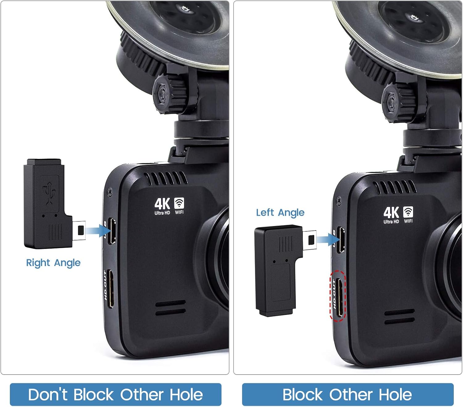 - Come with a power cord, a mini usb adapter with 90 degree left angle, a mini usb adapter with 90 degree right angle and a type c adapter with 90 degree right angle