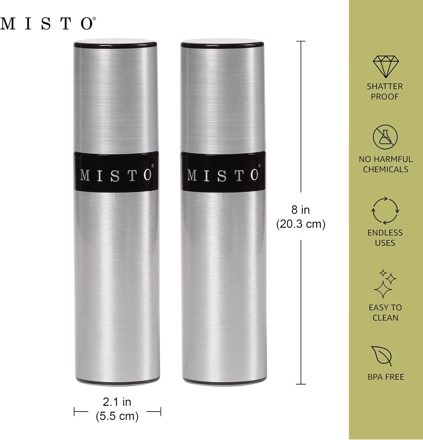 - HEALTHY EATING: evenly coats food using minimal oil for meals with less fat and more flavor; includes two 3.2-fluid ounce sprayers