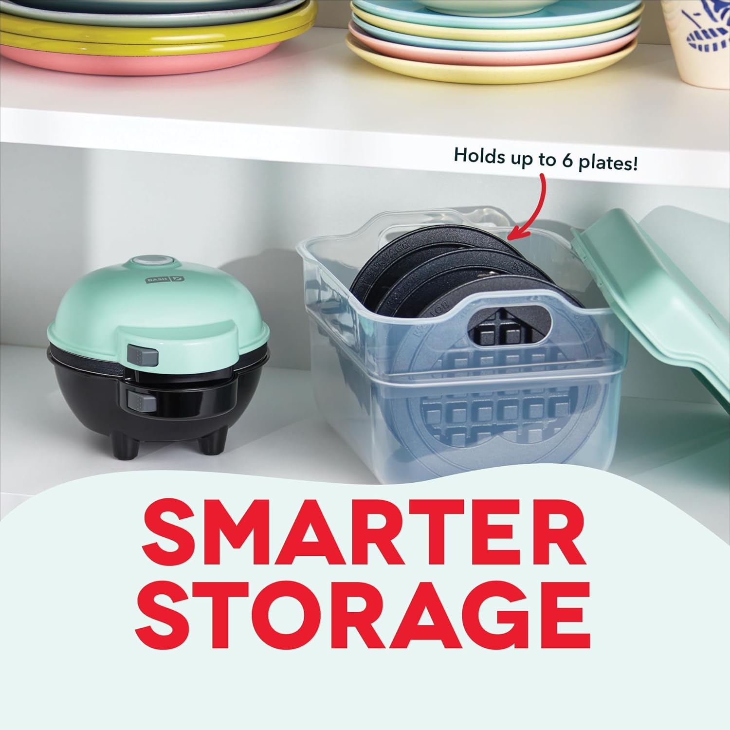 Store up to six Removable Plates for the Dash MultiMaker Mini Maker System. Removable Plates slide right in and stay in place. Included Lid makes for seamless and stackable cabinet or counter storage…