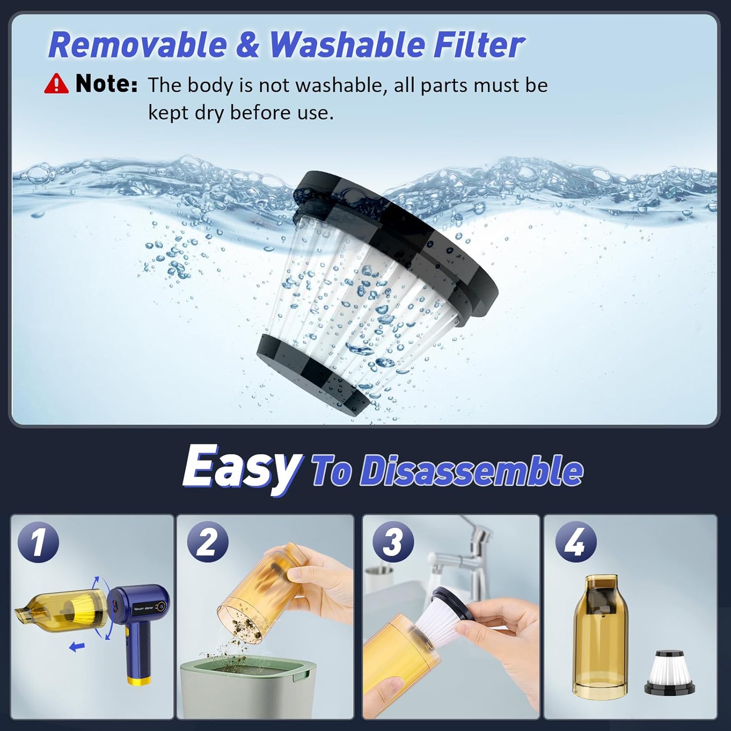 【Attentions】Our dust collector does not come with a charging adapter. The filter must be completely dry after cleaning before it can be used again, and the machine itself cannot be exposed to water. if you have any questions about the product before or after purchase, please contact us,we will solve it for you.
