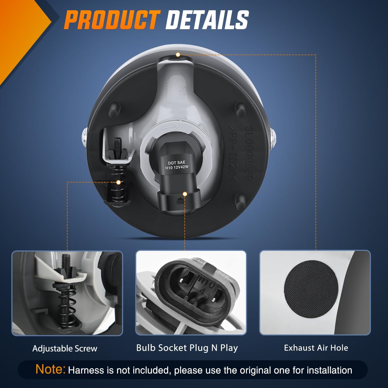 - Packages Includes: A pair of fog lights (driver’s side and passenger’s side) with H10 bulbs. Professional installation is highly recommended.