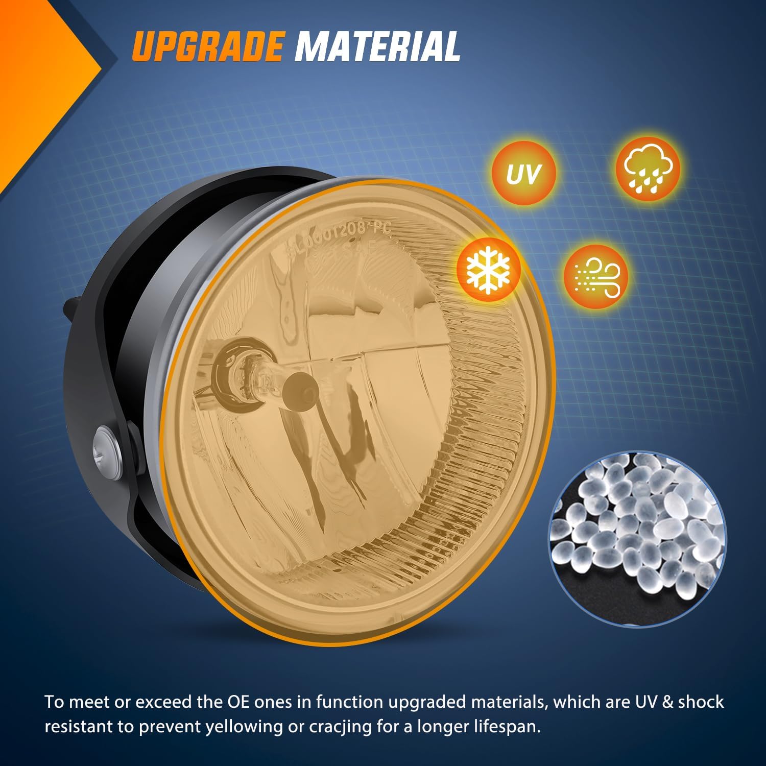 - Tough and Durable: The well-sealed fog light can prevent moisture or dust from entering the inside of fog lights in all weathers, to ensure excellent weather resistance, and impact resistance. The superior glass lens features higher transmittance, UV and heatresistance, and OEM grade housing is designed to withstand all kinds of weather and terrain. Perfect for replacing broken stock fog lights.
