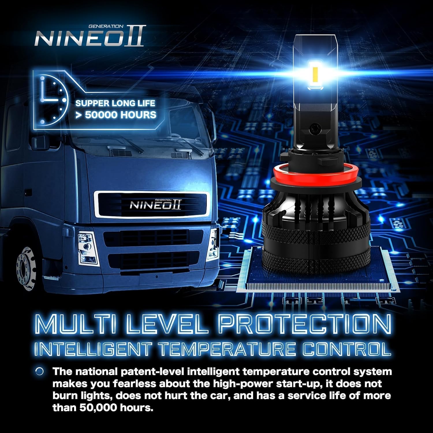 - Intelligent Temperature Control:NINEO H11/H8/H9 fog light built-in national patent-level intelligent temperature control system makes you fearless about the high-power start-up,protecting your car and you can enjoy long clear vision for 50,000 hours