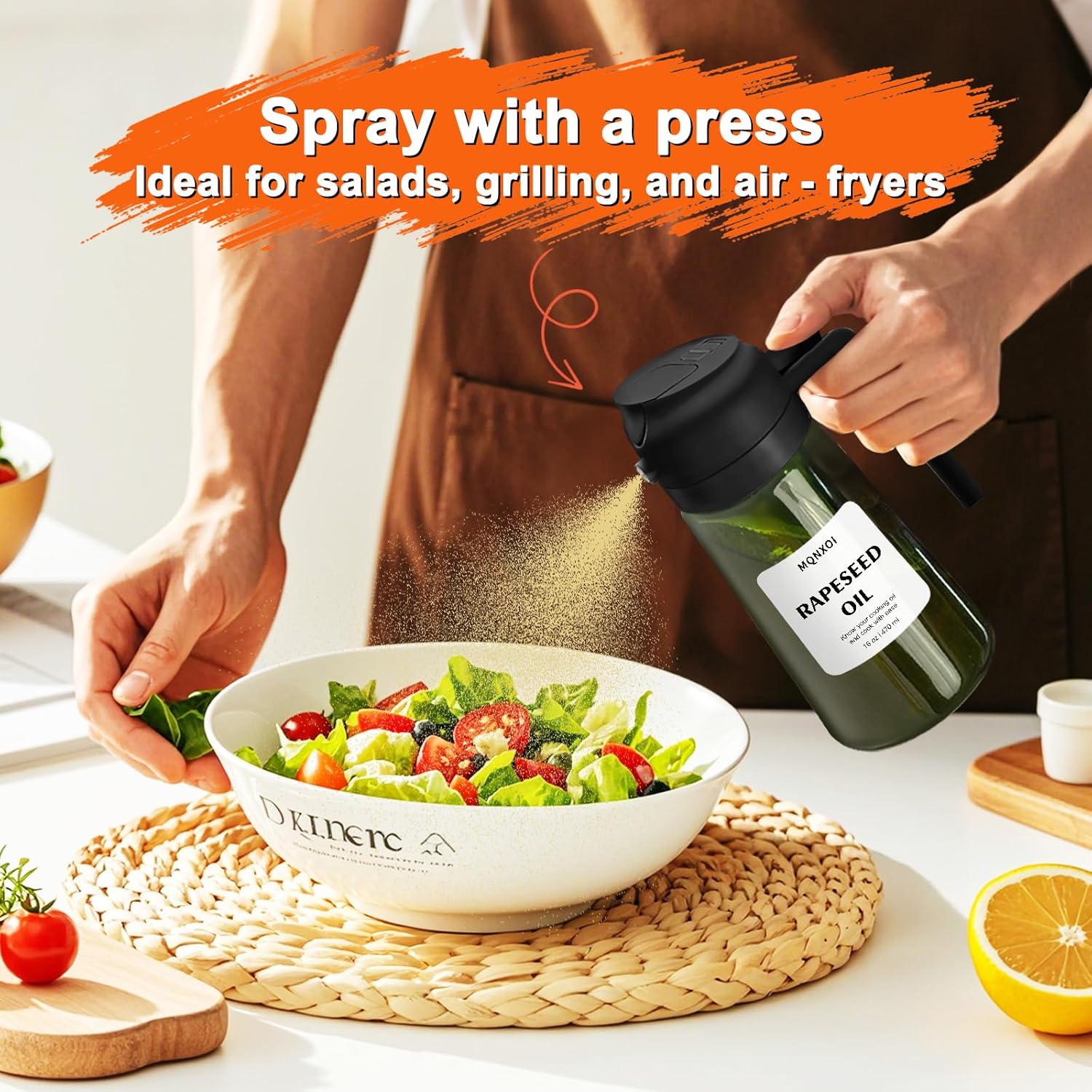 - 2 in 1 Oil Dispenser and Sprayer: Experience versatility in your kitchen with our innovative oil dispenser for kitchen, serving as both an olive oil dispenser bottle and oil sprayer for cooking. Seamlessly switch between pouring oil and spraying a fine mist with a simple adjustment, enhancing your culinary experience with ease and efficiency