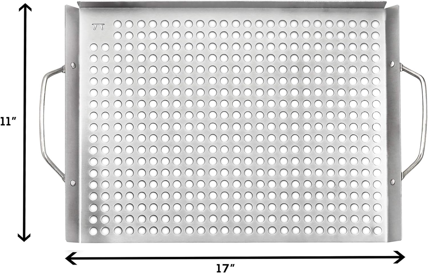 - GREAT FOR LARGER GRILLS: Large grill topper measures 20 x 11.25 x 2.25 inches including handles (17″ x 11″ grill surface), perfect for large portions; use as a fish grill pan, or in place of a veggie grilling basket