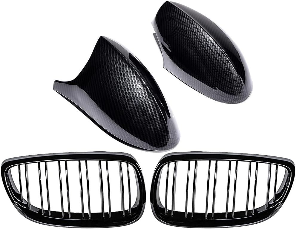 - [PACKAGE CONTENT] 1 Pair of Side Mirror Cover Caps (Left & Right), 1 Pair of Front Bumper Kidney Grille (Left & Right)