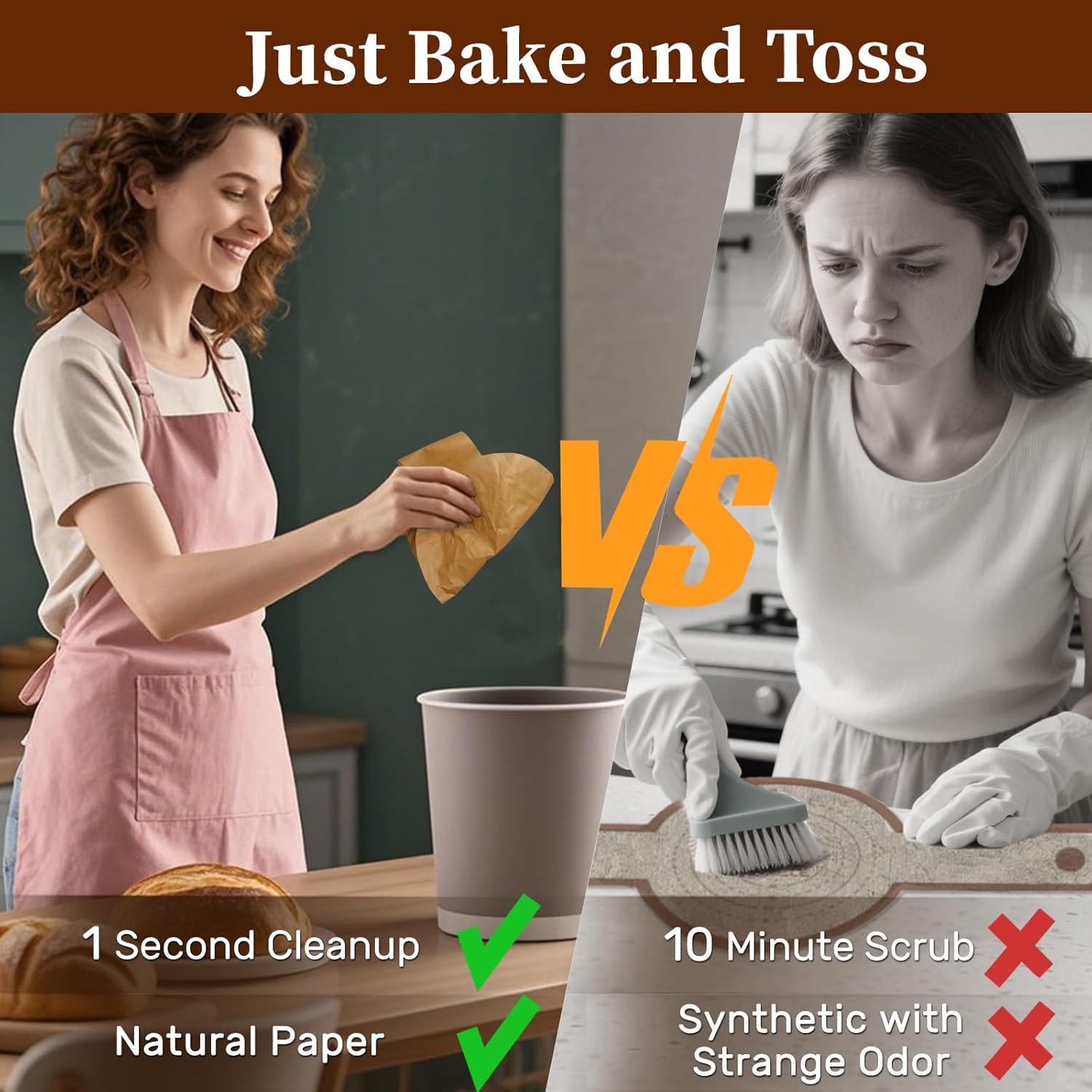 - 【Zero Cleaning Revolution】Ditch messy silicone mats! Our disposable parchment baking mat works exactly like silicone but requires NO washing—just bake, lift with the handle, and toss. Save 10+ hours a year on scrubbing grease!