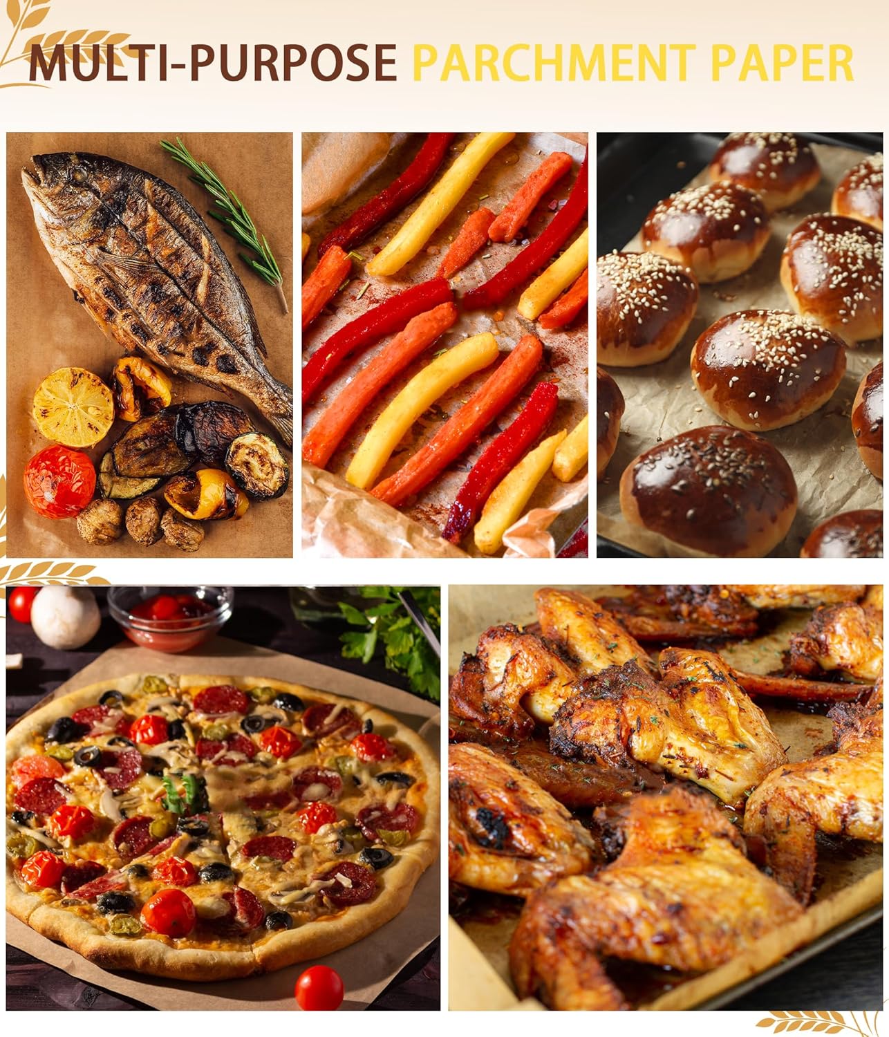 - MULTI-PURPOSE: These disposable parchment paper liners are not only used for baking food in the oven, but also can be used in air fryers, microwave ovens, steamers, heat presses, freezing and wrapping food, and so on. Our versatile parchment sheets is perfect for breads, cakes, pizzas, rolls, or a variety of baking pan liners, and its versatility makes it a must-have in the kitchen