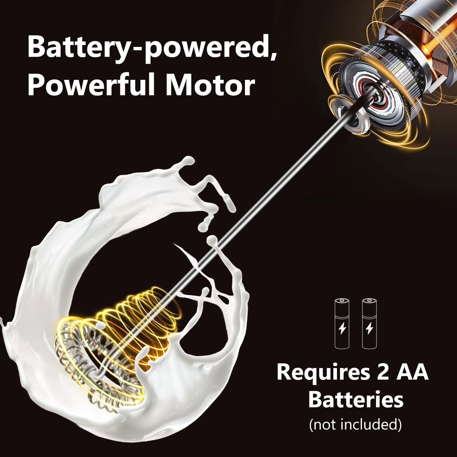 One-button operation, press-to-start design for hands-free frothing, battery-powered by 2x AA batteries (not included)