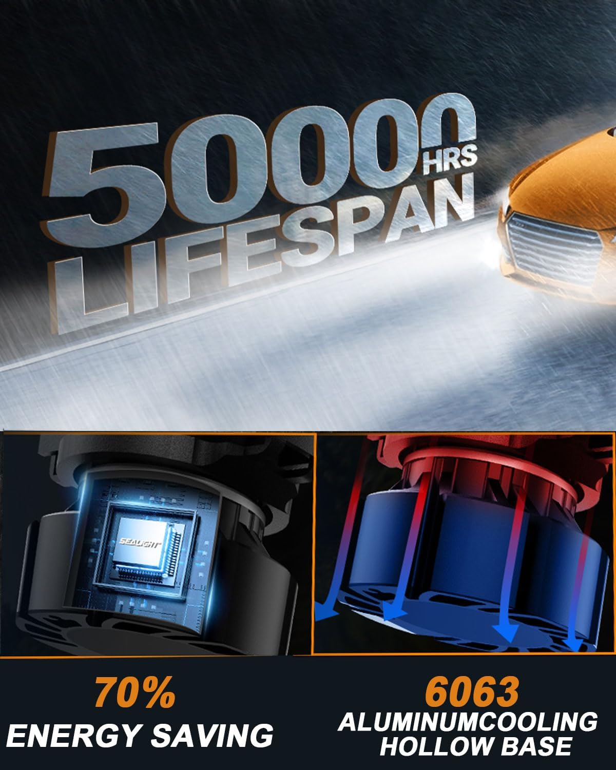 50000HRS Lifespan: Durable 6063 aviation aluminum construction body with hollow base design, these brilliant cooling structures allowing 5201 PS24W led fog light bulbs operate at optimal temperatures.The hollow base design provides optimal thermal management, ensuring reliable and long-lasting performance