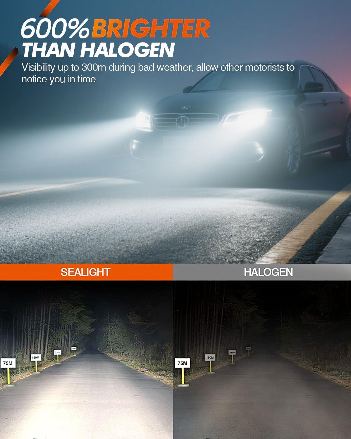 - 14000LM 600% Ultra-High Brightness: SEALIGHT 5202 LED fog light bulb use 12 high-power LED chips to converge the light beam, and have a longer viewing distance. 6500K cold white led fog lights provides a lighting experience close to natural light, reduces visual fatigue, and improves driving safety
