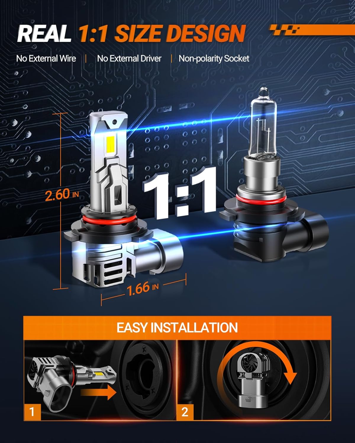 REAL 1:1 Size & 3 MINS Plug-N-Play: Sealight 9005 led Fog Light bulbs feature a near-identical 1:1 mini design as original bulbs, requiring no external drivers or wires for a true plug-and-play experience