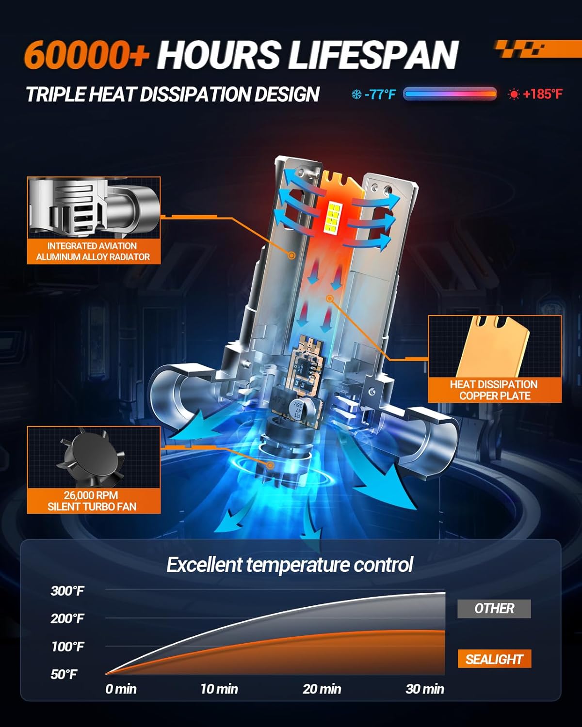 60000 Hours Lifespan: Sealight 9005 led bulbs Fog Lights offer exceptional heat dissipation, providing over 60,000 hours of reliable illumination and smooth operation