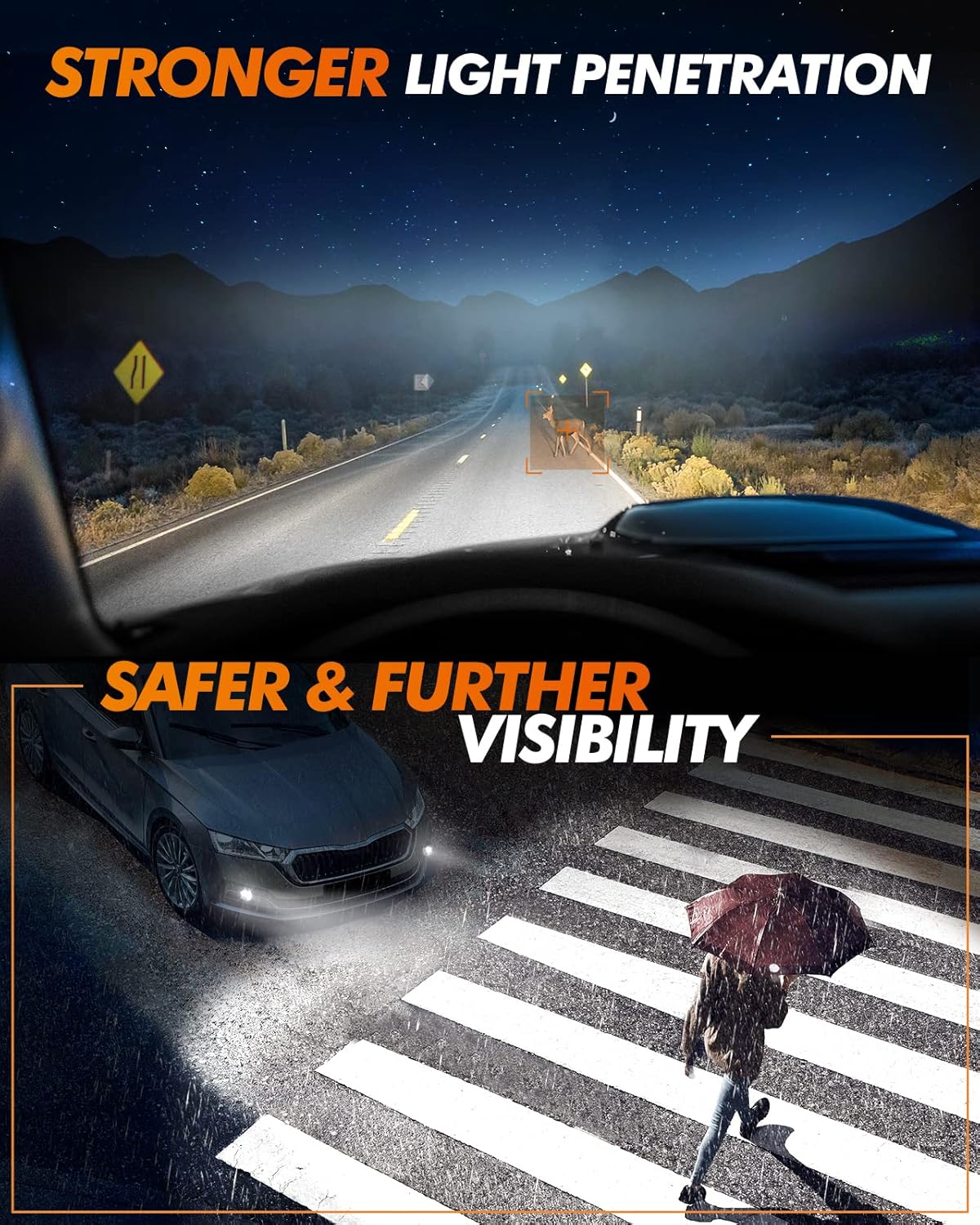 12,000LM Ultra-Penetrating Brightness:SEALIGHT H10/9145 LED fog light bulbs feature 5530 CSP chips and up to 12,000LM brightness, delivering powerful penetration through rain, fog, and dust. With advanced beam adjustment and auto-dimming, 9145 LED bulb ensure safer driving and long-lasting performance.