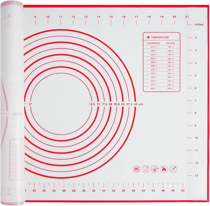 - Perfect for Baking/Dough Mat: For preparing all kinds of pie crusts, pie rolling, pizza, dough, cookie, bread, macarons, pastries and fondants. Perfect size for baking, measured with imperial and metric baking sheet, which can guide everyone easy to bake