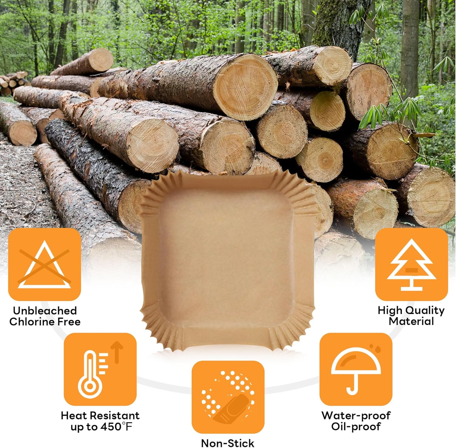 - Food-Grade Material & Safe for Cooking – Our air fryer liners for COSORI 2.1 Qt Air Fryer are made from natural, food-grade wood pulp. They are unbleached, chlorine-free, and free of harmful chemicals, ensuring no impact on the taste or quality of your food. Safe to use for all types of cooking!