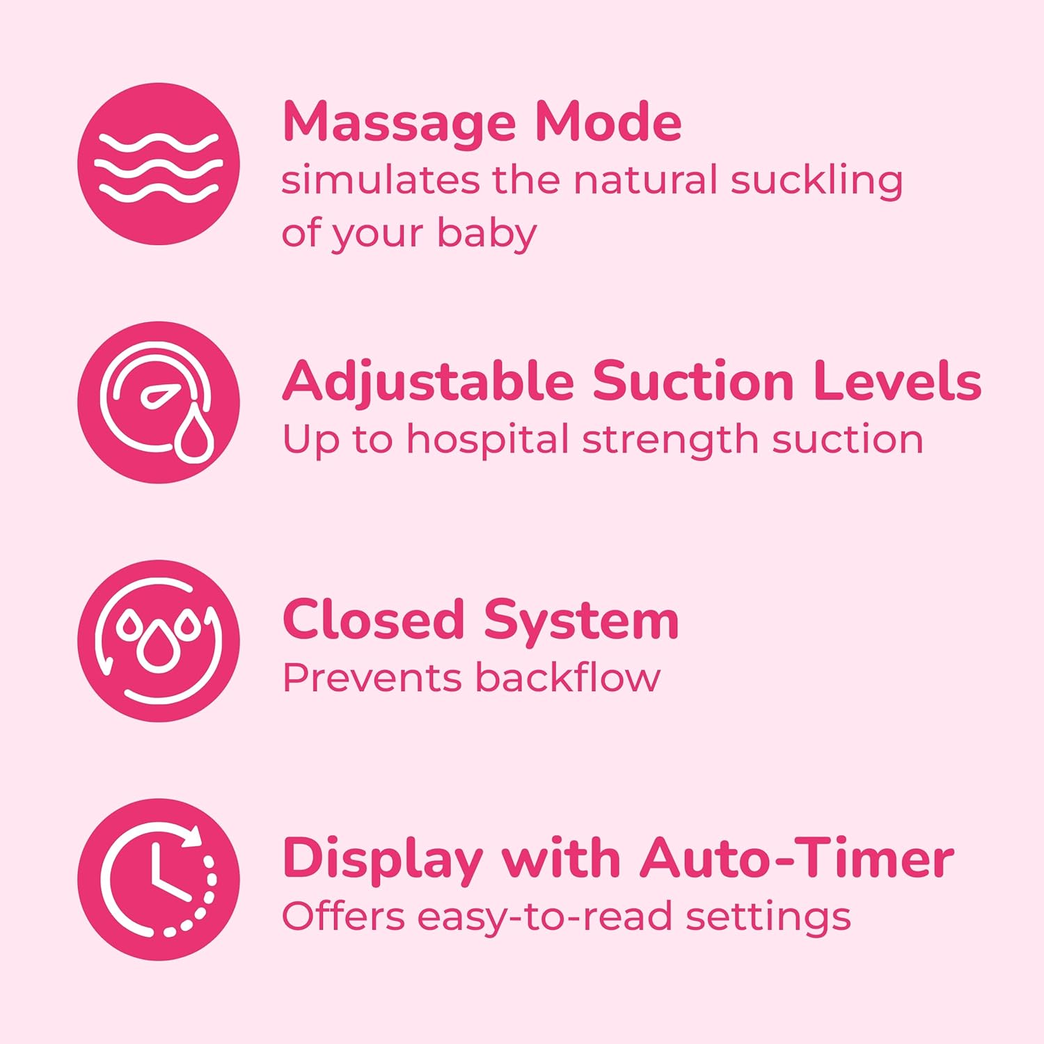 Personalized Breast Pump Settings: Adjust Spectra breast pump settings to fit your preference; adjustable two-phase cycling features expression and massage mode
