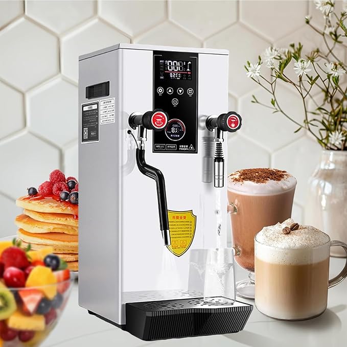 【MULTI-FUNCTION MILK FROTHER】- The multi-function milk frother can be used as a heat beverages, extract tea, brew milk, and boil water to meet your usage needs. It can output up to 5L of hot water at a time and continuously output steam for 20 minutes. It can easily handle large customer flow. 【FAST HEATING】- Steam Foamer is up to 3000W for fast heating. 0.1 gallon of 59°F beverage heats up to 122°F in just 20 seconds without a long wait. the excellent milk froth with delicate taste is finished in 2 minutes, and produces 95% of dense foam which lasts longer. 【DOUBLE TEMPERATURE DISPLAY】- with microcomputer independent LCD display, steam pressure gauge can show the pressure in real time, adopt contact temperature probe, intelligent LCD screen can show the water temperature and cup temperature in real time, real-time observation of the temperature of the heated beverage…