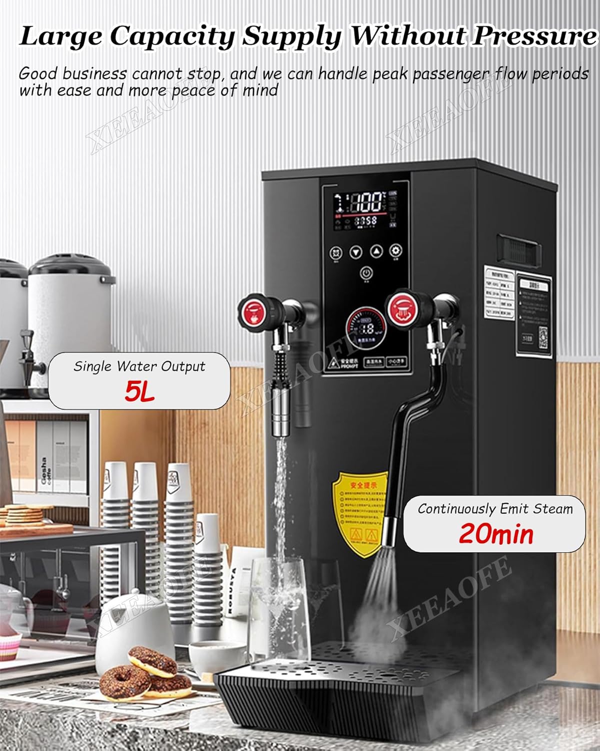 - 【MULTI-FUNCTION MILK FROTHER】- The multi-function milk frother can be used as a heat beverages, extract tea, brew milk, and boil water to meet your usage needs. It can output up to 5L of hot water at a time and continuously output steam for 20 minutes. It can easily handle large customer flow