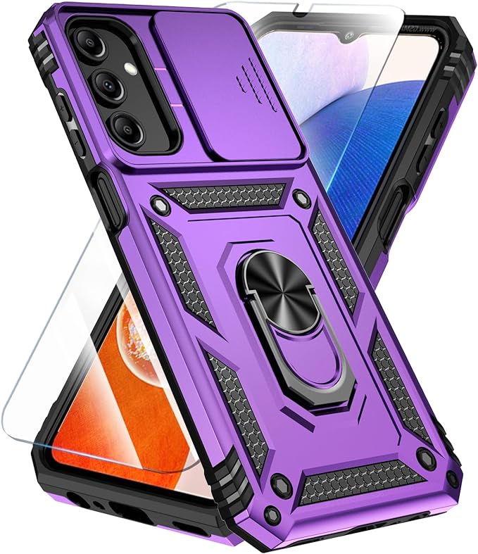 The **A15 Hybrid Protective Case for Galaxy A15 5G – Purple** is a premium case engineered for comprehensive protection and enhanced user experience. It features: 【Compatible With】Specially designed for Samsung Galaxy A15 5G(2024), Package includes Soft HD Screen Protector and install them according to the instructions, 【Note that】wireless charging is not supported 【Camera Lens Protection】 This phone case use lens slide design, it easy to slide and not to loose, and enhance protective of your phone camera from scratches, collision, scuffs and impact, not only improve safety, protect your privacy but also has a sense of fashion.