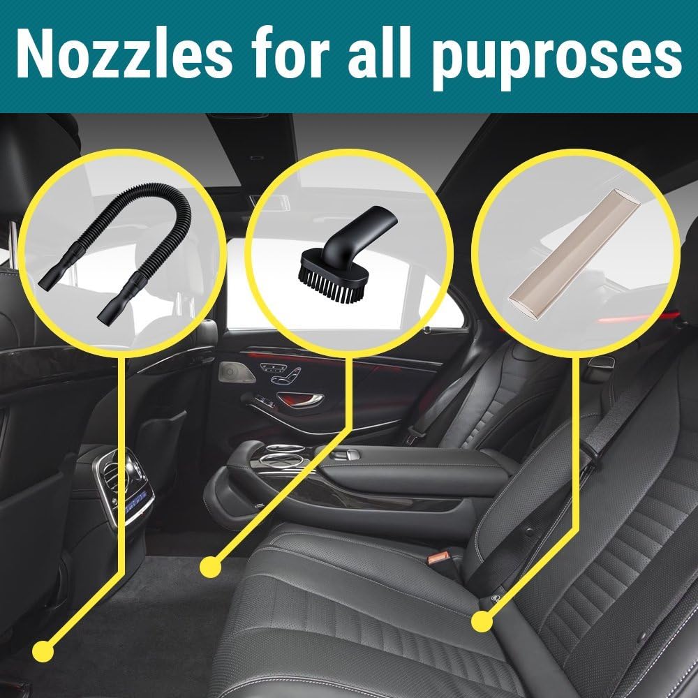 - Interior Car Cleaning Kit Includes: 3 attachments (flathead, extendable, or brush nozzle) for detailing, carry bag, filter brush, and spare HEPA filter. Must have car accessories for men or women; these gadgets will keep the interior cute and tidy.