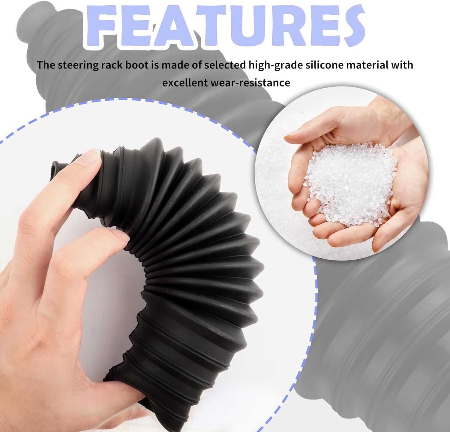 All-around Dust Protection: Silicone is a tough and flexible material that fits snugly into the tie rods, effectively blocking out moisture, dust and debris and protecting gears, racks and other steering components from damage