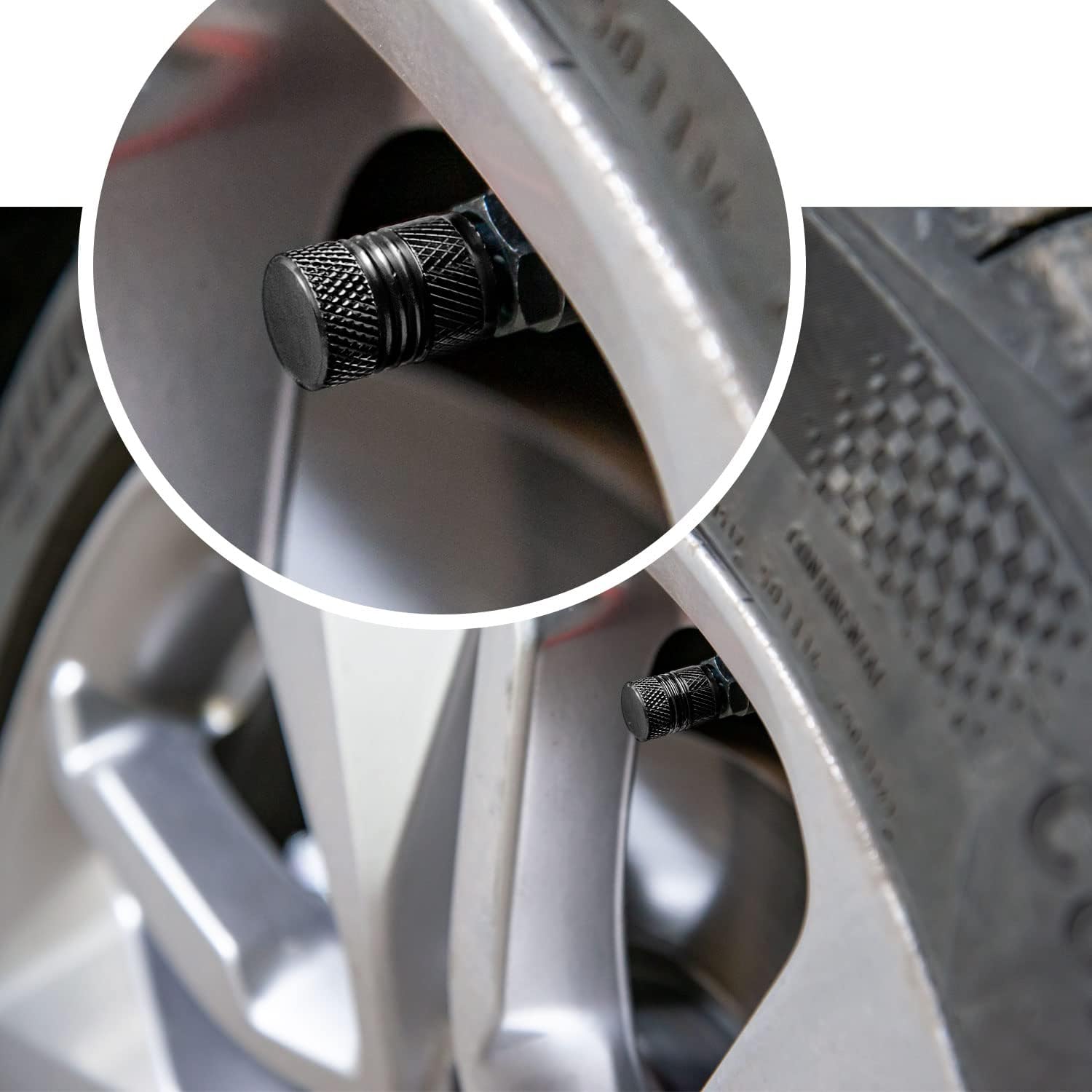 【CORROSION RESISTANT DESIGN】- BAURATTI tire valve stem caps come with high-quality anodized Aluminum Alloy shell and plastic liner, which will prevent the valve stem from corrosion, special in wet/cold area.. 【HIGH-QUALITY MATERIAL】- These tire stem valve caps come with high-quality sturdy anodized aluminum alloy covers and plastic lining, so you get the best of both material: no internal corrosion and no external cracking or fade.. 【UNIVERSAL FIT】- The Car tire valve caps are compatible with all American standard schrader valve stem. Include cars, SUV, trucks, RVs, bicycles, bikes and other motor vehicles, etc. The inner diameter of tire air caps is 7mm/0.31inch, and the inner height is 13.9mm/0.54inch….
