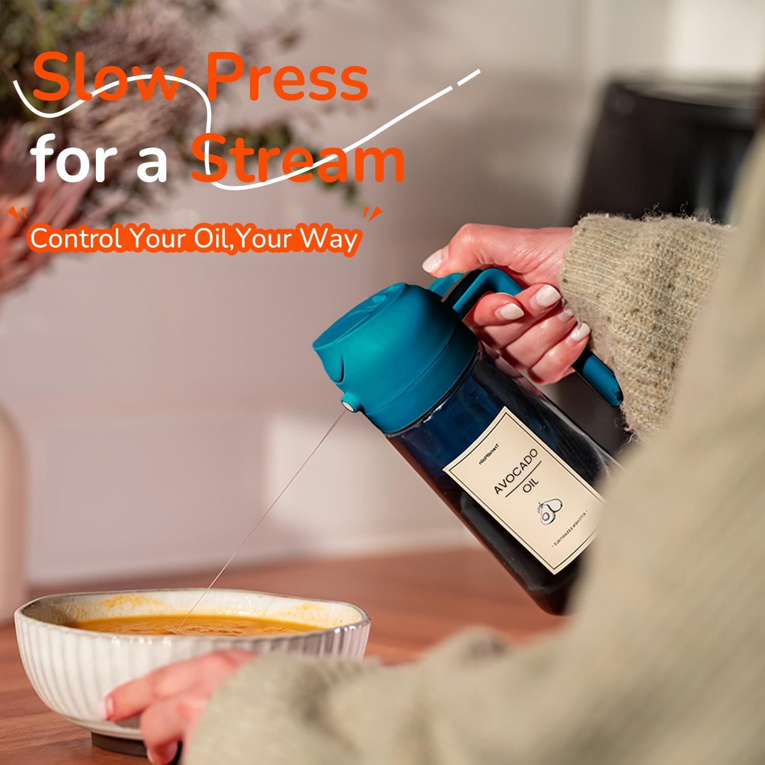 Dual-Function: This 2 in 1 oil dispenser and oil sprayer offers both pouring and spraying capabilities, making it a versatile solution for your kitchen needs. Switching between the two functions is effortless, keeping your kitchen tidy and efficient