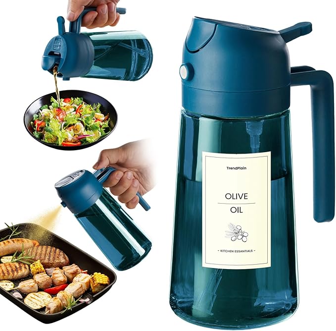 Trendplain 16Oz/470Ml Blue Glass Olive Oil Sprayer For Cooking – 2 In 1 Olive Oil Dispenser For Kitchen Gadgets
