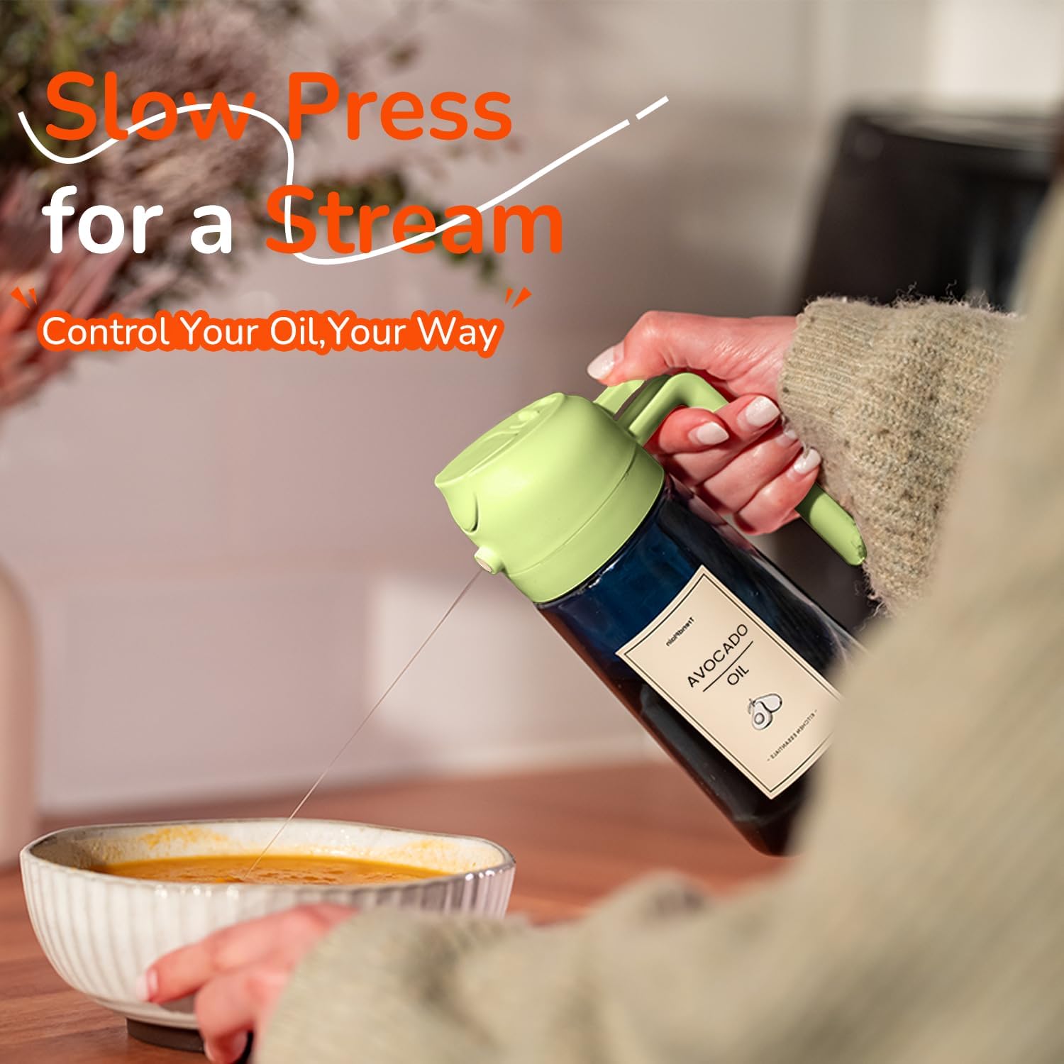 Dual-Function: This 2 in 1 oil dispenser and oil sprayer offers both pouring and spraying capabilities, making it a versatile solution for your kitchen needs. Switching between the two functions is effortless, keeping your kitchen tidy and efficient