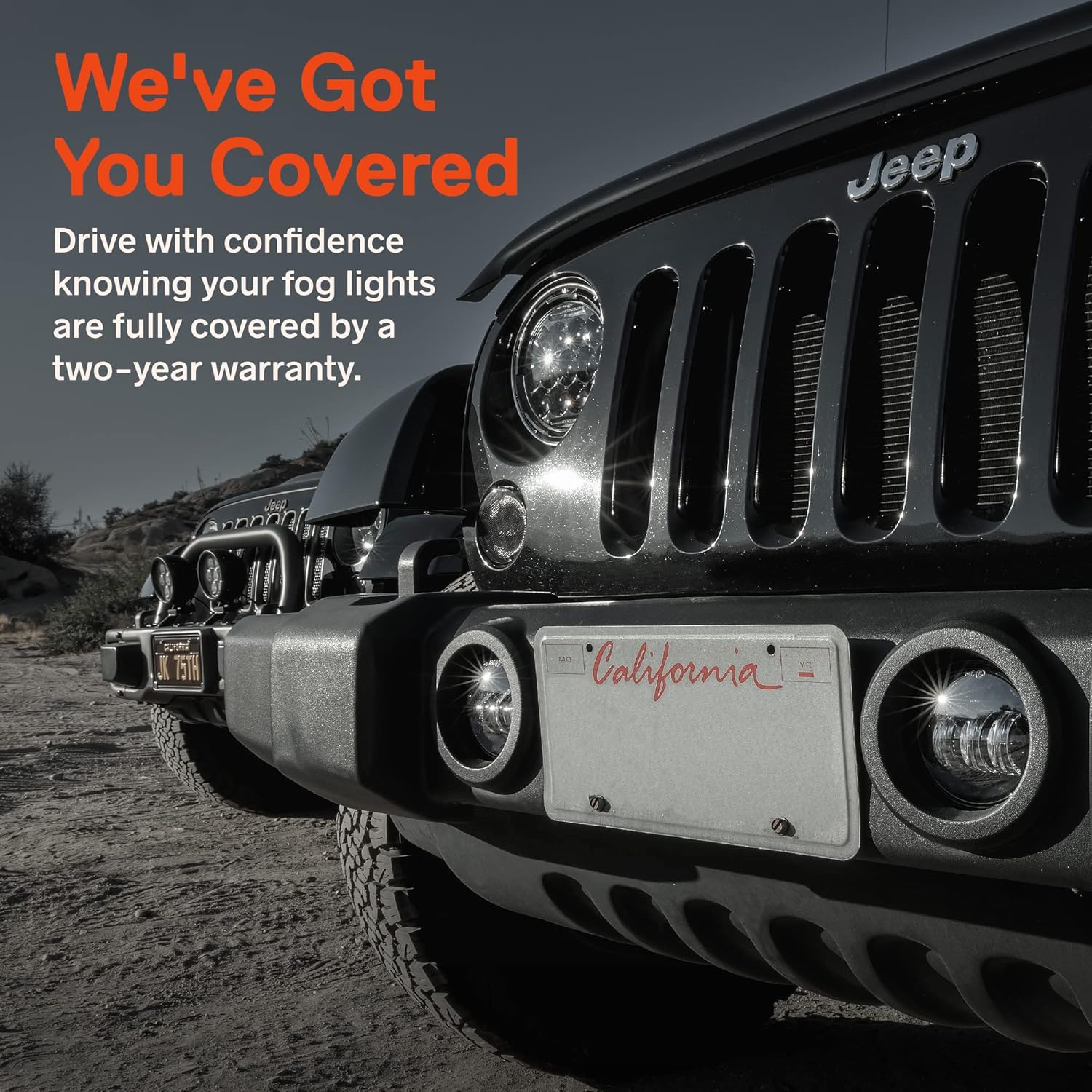 BUILT TO OUTPERFORM – Like your rig, our lights are designed to excel in the worst conditions. With an IP66 waterproof rating, impact resistant polycarbonate lens and durable die-cast aluminum body, these JK/JKU and JL/JT Rubicon and Sahara fog lights are made to take a beating.