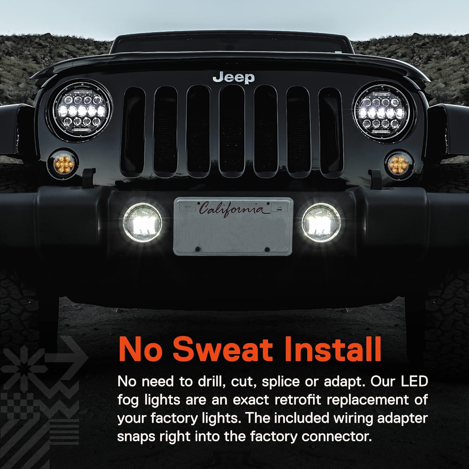- NO SWEAT INSTALL – No need to drill, cut, splice or adapt. With the included wiring adapter, these LED fog lights plug right into the factory harness and bolt right up.