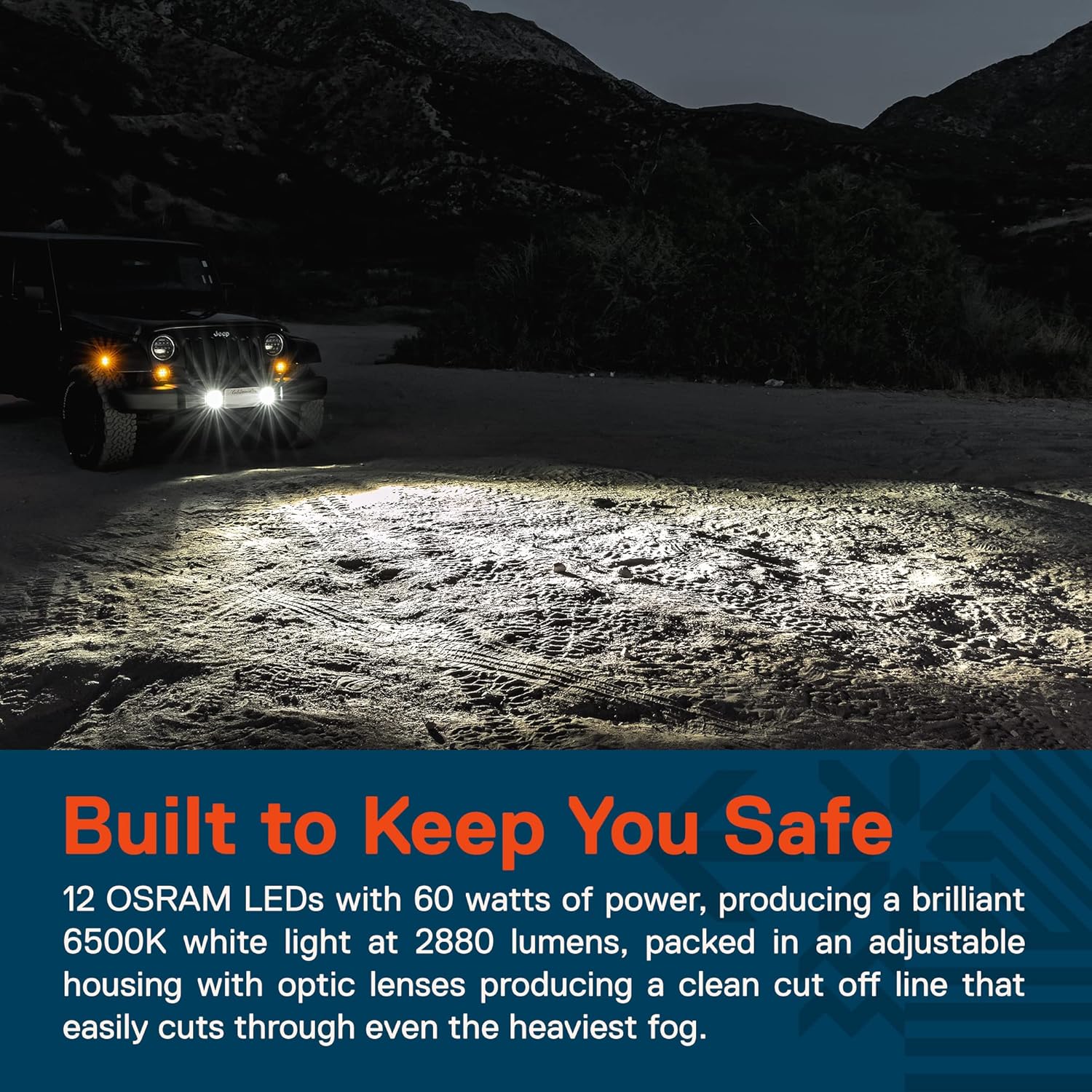 - BUILT TO KEEP YOU SAFE – Cut through the fog like a knife through butter, thanks to 60 watts of power that produce a brilliant 6500K white light and 2,880 lumens. All of this intensity is jam-packed into an adjustable housing with optic lenses that produce a clean cut-off line.