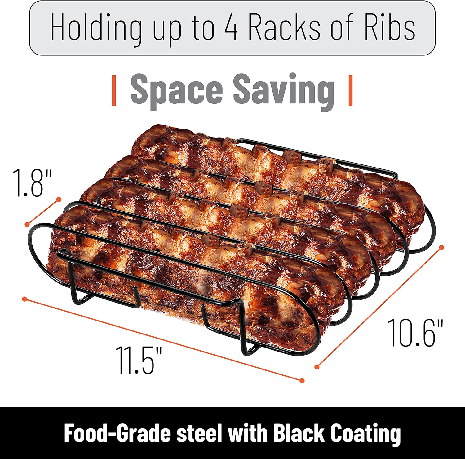 This rib rack optimizes the space in your grill by holding 4 ribs upright while cooking. It allows you to cook other foods on your grill, maximizing the amount of food you can cook at once.