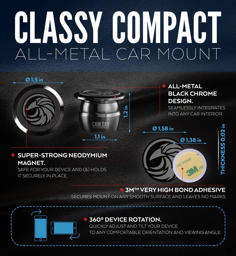 - ALL-METAL & LOOKS AWESOME – our small and stylish magnetic phone car mount looks awesome and performs even better. Thin metal disc can adorn your phone or hide under its case.
