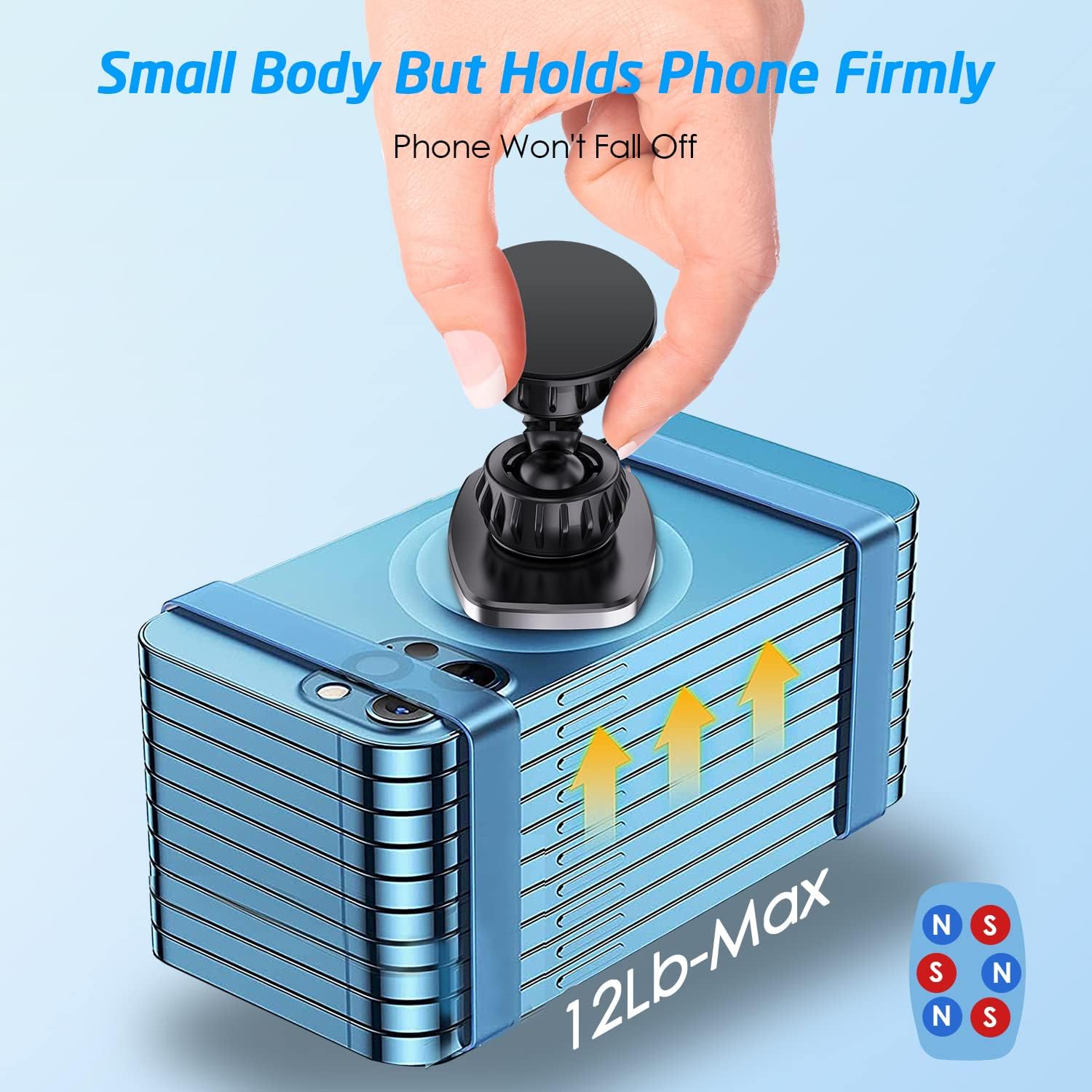 Universal Compatibility: This cell phone car mount can hold most smartphones. This car magnetic phone mount can hold 4 – 6.7 inch iPhones and can securely hold up to 12 pounds of weight without falling off.