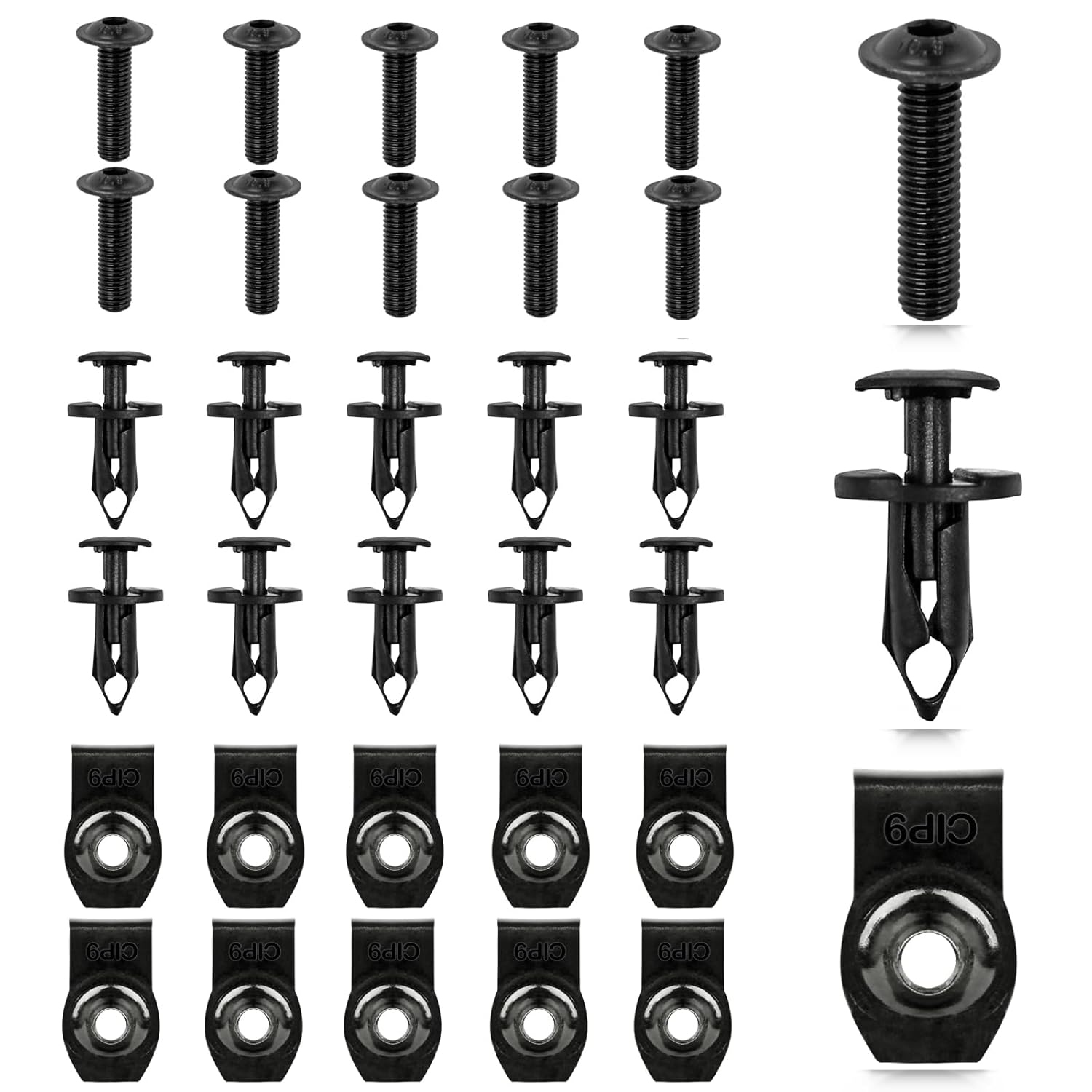 10pcs M6 screw made of high-quality steel, fits Polaris Ranger RZR Sportsman General for connecting the footwells to the body or replacing the missing screw on skid plates. 10pcs U-Type Nut maintains a tight and secure hold on panels and retains holding power without masking or retapping, can be used on a variety of Polaris utv where their measurements fit. 10pcs Plastic fastener rivet clips made of high-quality nylon, Easy to use, insert the female part into the hole and push the male part to the bottom to close the position…