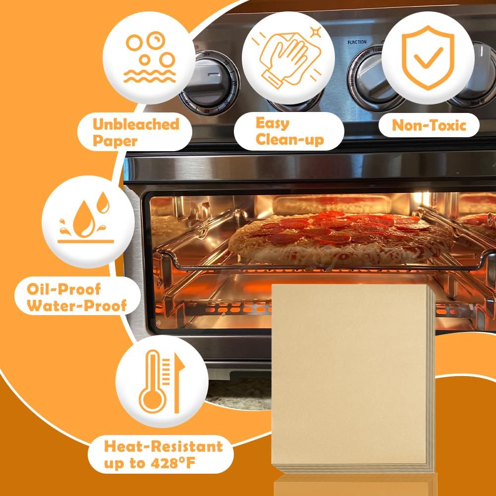 Perfect 9″x11″ Size for Cuisinart TOA-70: Designed to fit the Cuisinart air fryer and convection toaster oven and Breville smart oven air fryer pro BOV900BSS, these parchment liners (9″x11″) provide an ideal match. For other oven models, the liners can be trimmed to fit as needed.. Non-Stick and Mess-Free: Prevents food from sticking to trays or baskets while absorbing excess oil, ensuring easy cleanup and keeping your oven or fryer spotless.. Premium Food-Grade Material: Made from unbleached, natural wood pulp, these liners are food-safe and withstand temperatures up to 450°F, perfect for baking, frying, and roasting….
