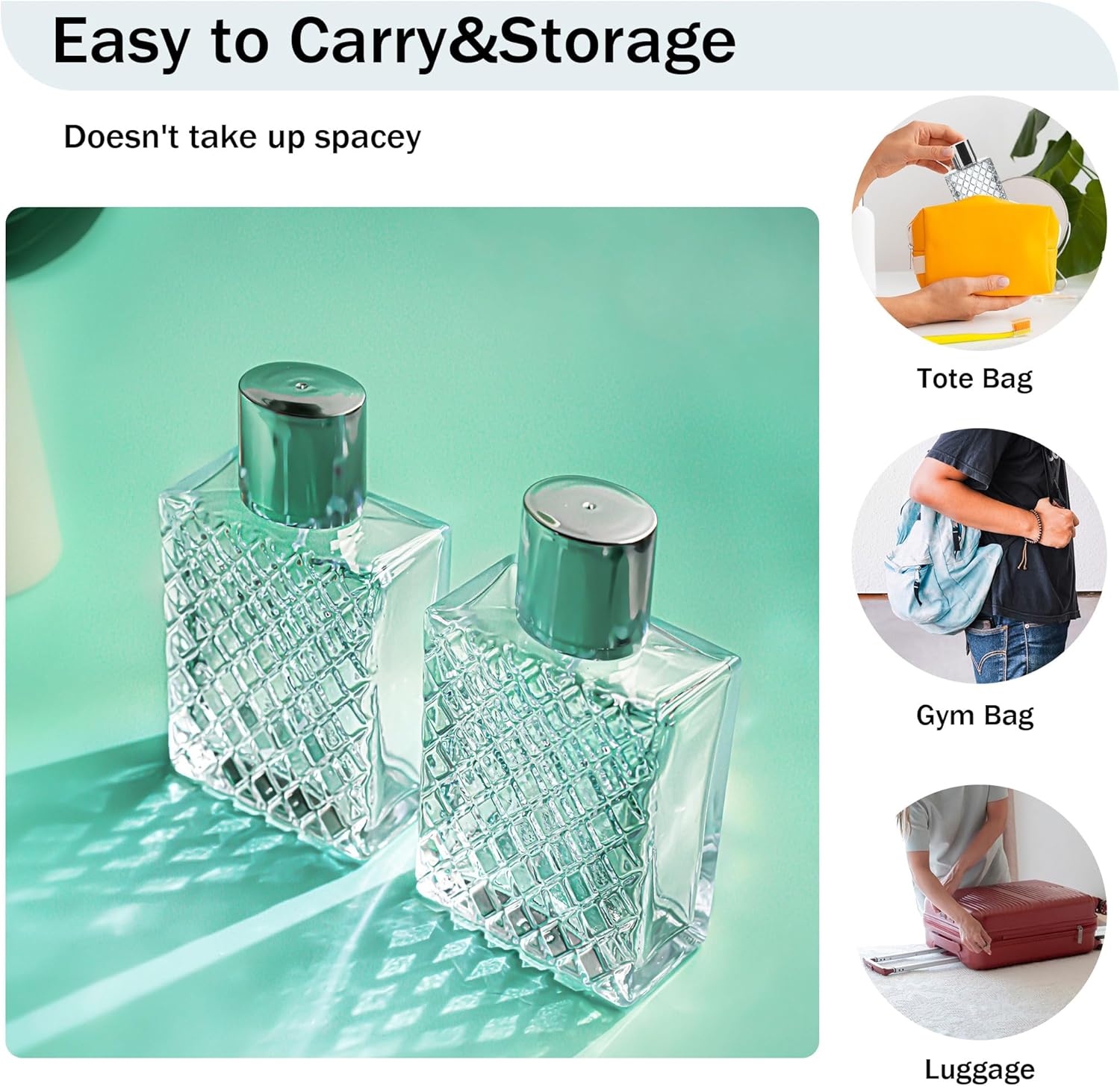 Easy to Carry: Whether you are taking a vacation or heading to the gym, these portable spray bottles provide a great way of taking your favorite spray mist beauty products with you. Carry with you in your gym bag, luggage, tote bag and more.