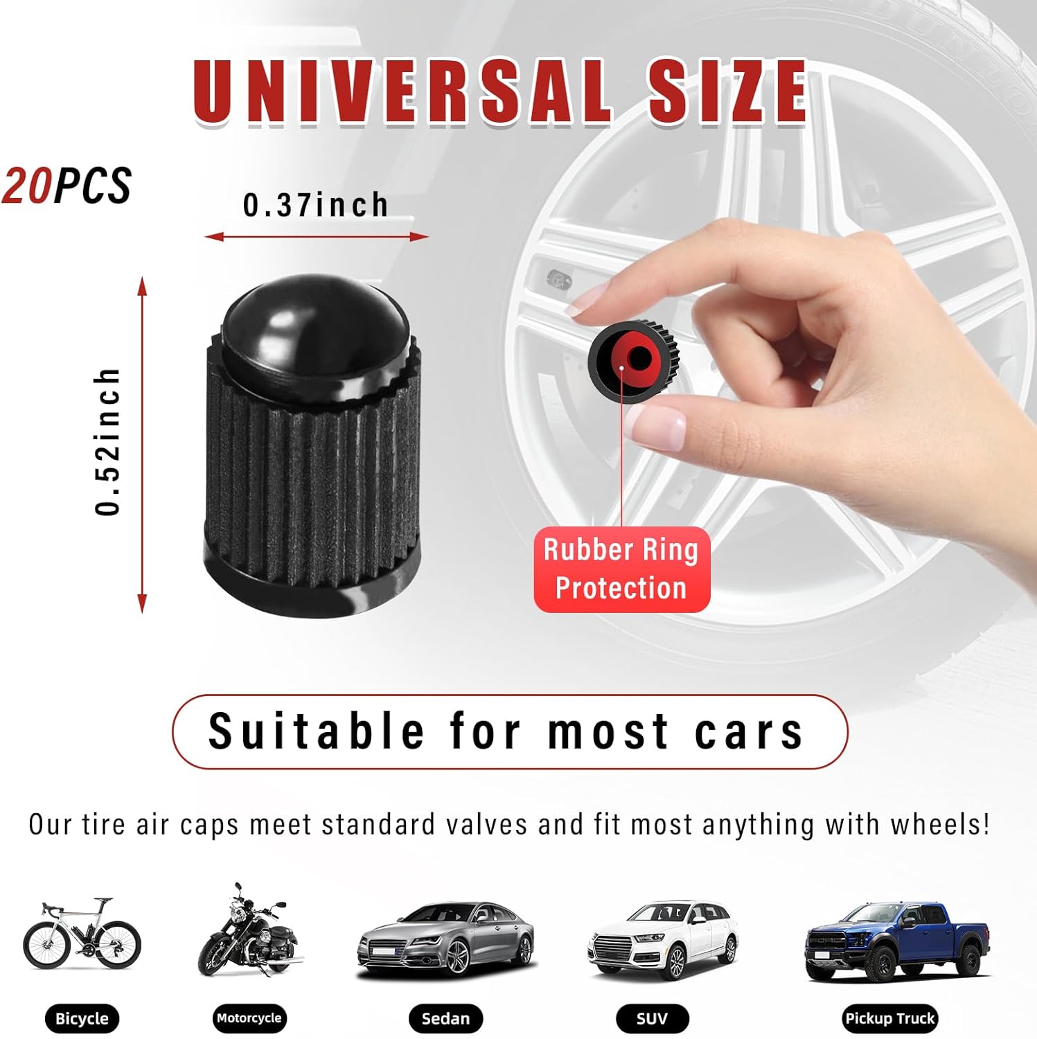 - 【Full Protection】: The tyre valve cover has a O rubber seal for a tighter and more effective seal. Therefore, it prevents tyre pressure leakage well and ensures your safety during long and tough drives. At the same time, it protects the tyre valve from dust, dirt and moisture from getting inside the valve.